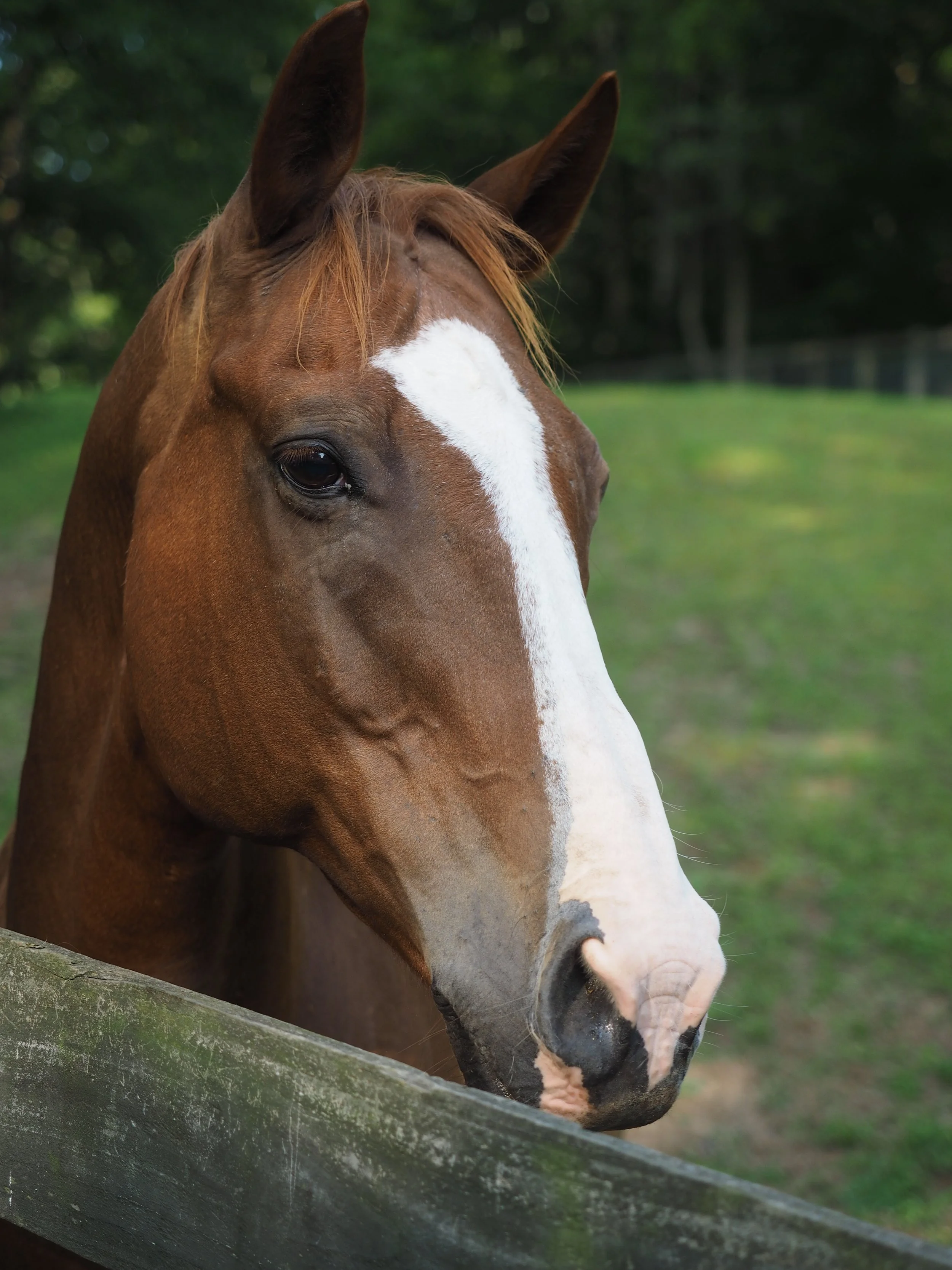 Grape is a beautiful Hanoverian with a history in dressage riding. She loves people and is always first in line for attention.